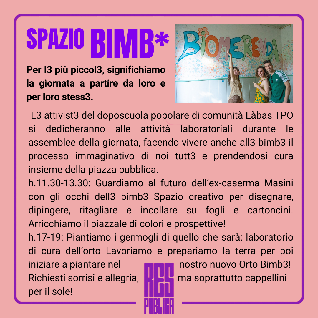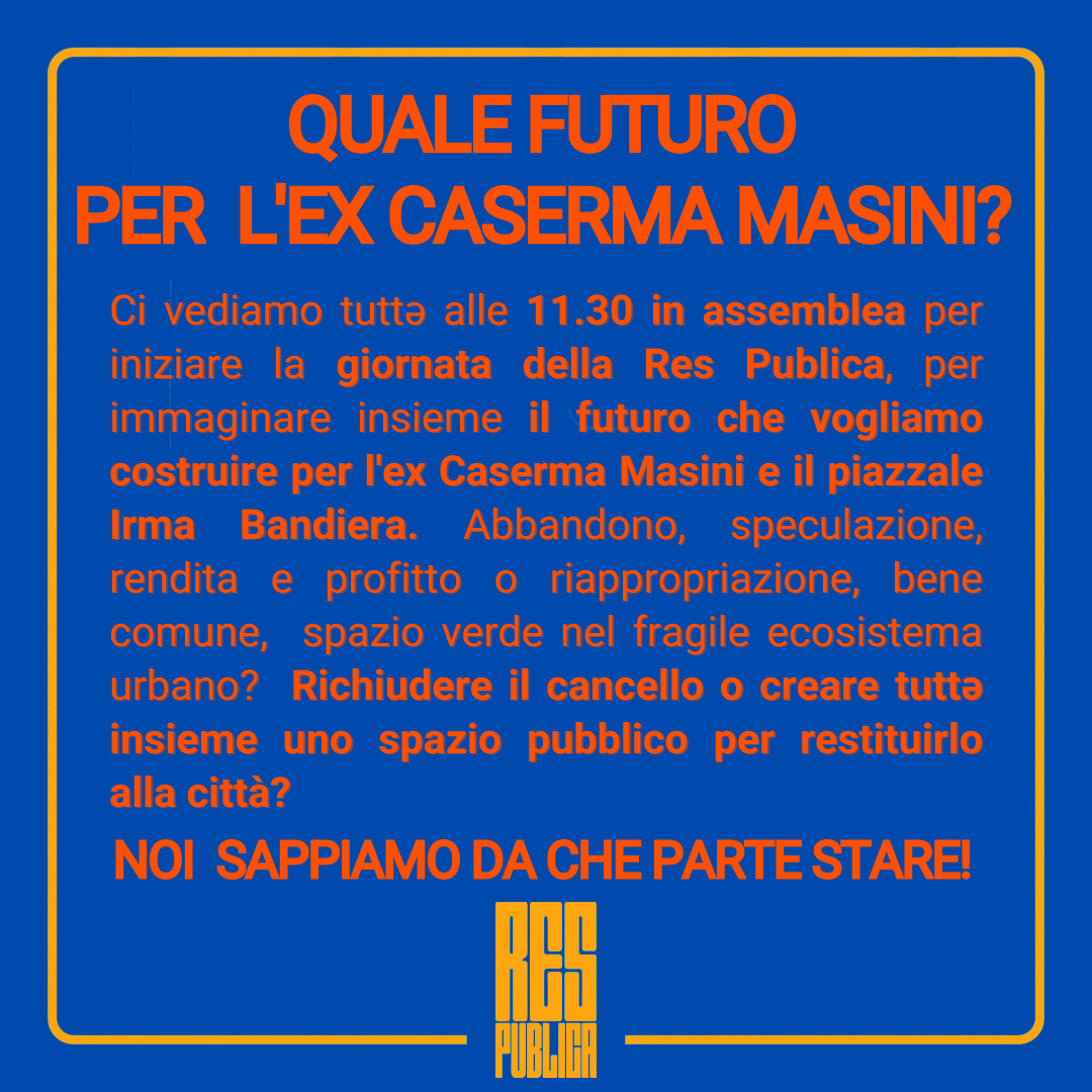 C'è una nuova piazza in città: fruibile, creativa, di relazione; in poche parole, una piazza pubblica. Quale futuro le sarà riservato? Ulteriore abbandono, speculazione, rendita e profitto – o riappropriazione, bene comune, nuovo spazio verde nel fragile ecosistema urbano da creare tutte e tutti insieme per restituirlo alla città?